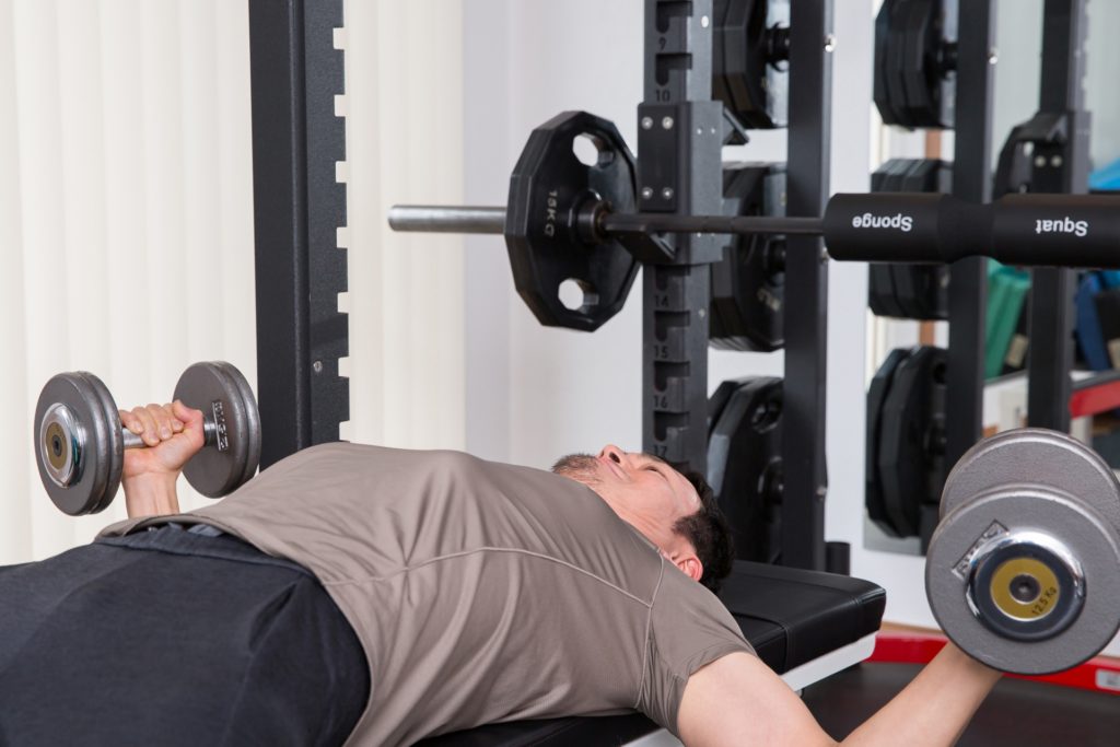 こんなのをやろうと思った時に、正しいフォームは何かと言えば、写真のようにダンベルを下げた時に胸がストレッチされているかどうかなのです。