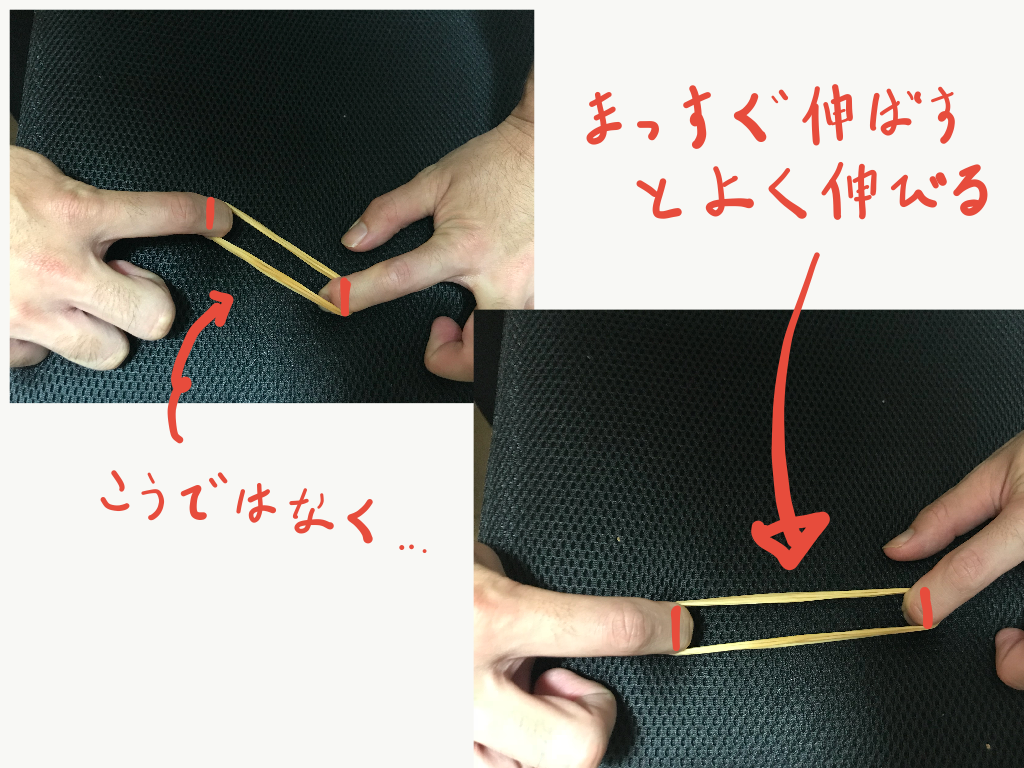 上手にストレッチさせることが出来ていれば後はそれを縮めるだけ。