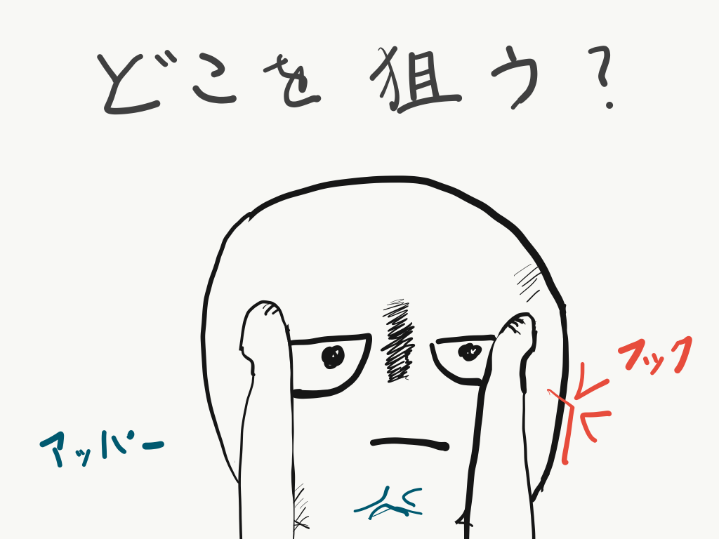 そう、フックが相手の横の死角から飛び込むパンチで、アッパーは下の死角から飛び込むパンチということですね。