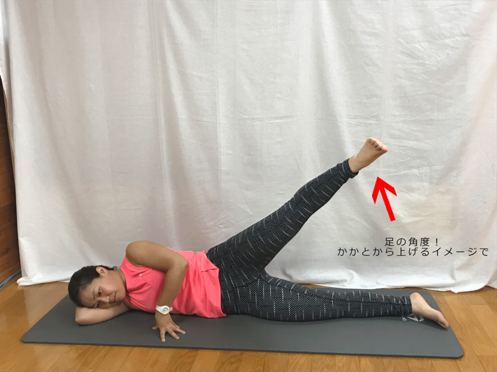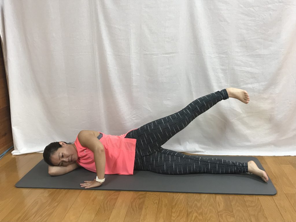 動かす足(上の足)の膝は曲げずに真っ直ぐを保つ