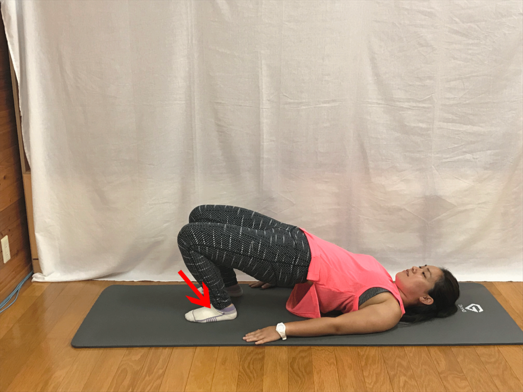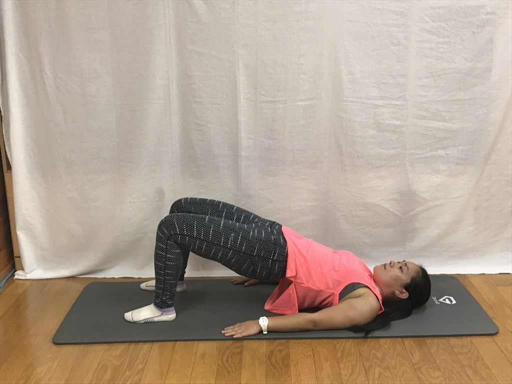 - 息を吐きながら、お尻を持ち上げる