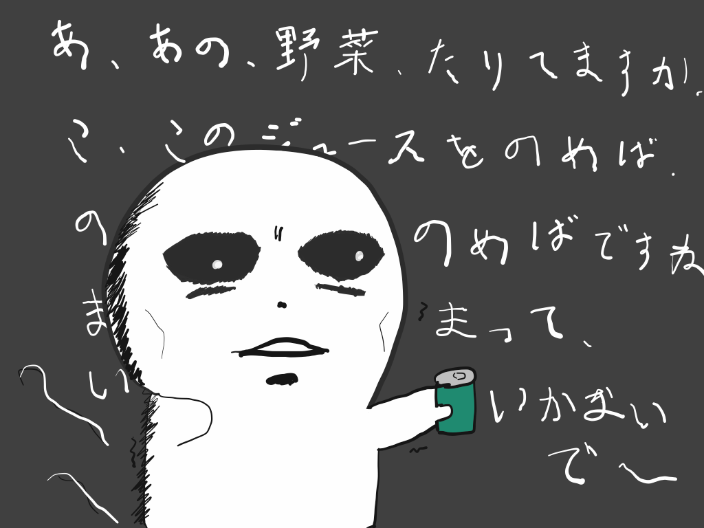 野菜ジュースが良いぞ~、身体に良いぞ~、一日分の野菜が~、普通に食べるより~