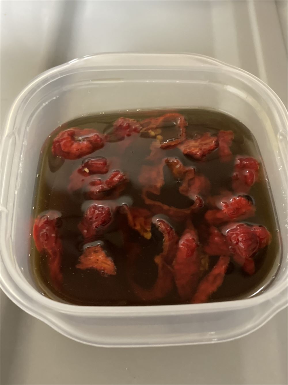オリーブオイルとかごま油に浸して激辛ソースにした後、食べ物に垂らして食べるそうだ。