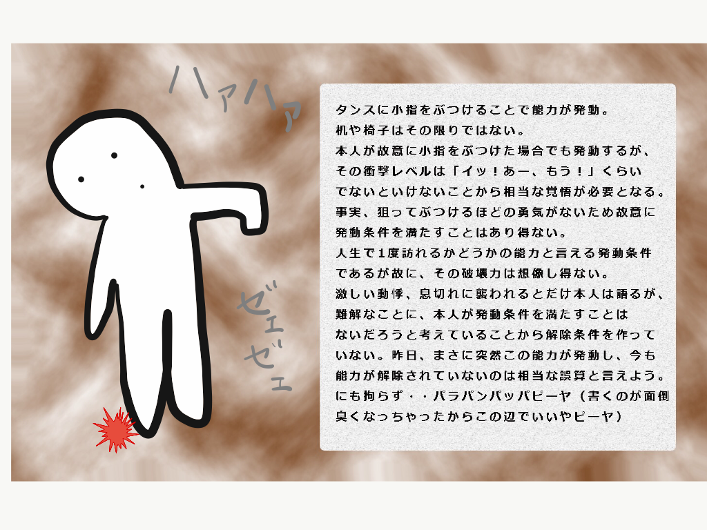 最後に、私が昔、マンガ【ハンター×ハンター】の能力解説を真似て作ったイラストが残ってたので紹介